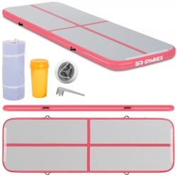 Mata materac gimnastyczny akrobatyczny do ćwiczeń dmuchany dł. 3 m gr. 10 cm różowy